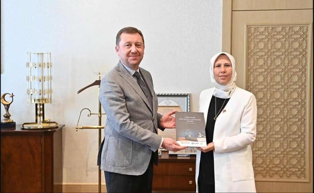 HUDER Genel Başkanımız Av. Hasan OYMAK, Genel Başkan Yardımcılarımız Av. Hatice HASDEMİR, Av. Halil ÖZKAN, Av. Hüseyin DENLİ, Genel Sekreterimiz Av. Mustafa ÇETİN, Den. Kur. Başkanımız Av. Mustafa Asım KAHYAOĞLU, Yönetim Kurulu Üyemiz Av. Merve ERDEN, Av. Kamil KURT’tan oluşan HUDER heyeti ile birlikte, Cumhurbaşkanlığı Genel Sekreteri meslektaşımız Sayın Hakkı SUSMAZ’ı ziyaret ederek “Türkiye’nin Sivil Anayasa Yolculuğu Projesi” Sonuç Raporunu hediye etti. Saygıdeğer meslektaşımıza, samimi ev sahipliği ve değerli istişareleri için teşekkür ediyoruz.